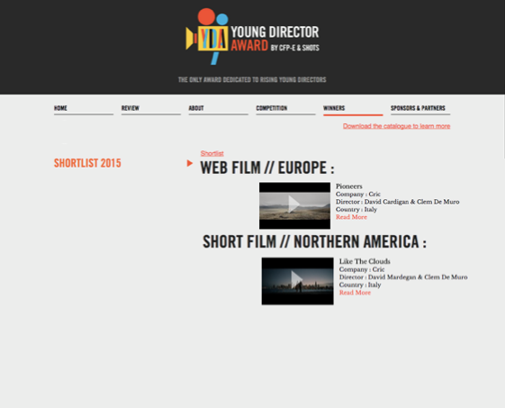 We are so proud to announce the nomination of "Pioneers" and "Like the Clouds" in Young Director Award Cannes Lions International Festival of Creativity.
