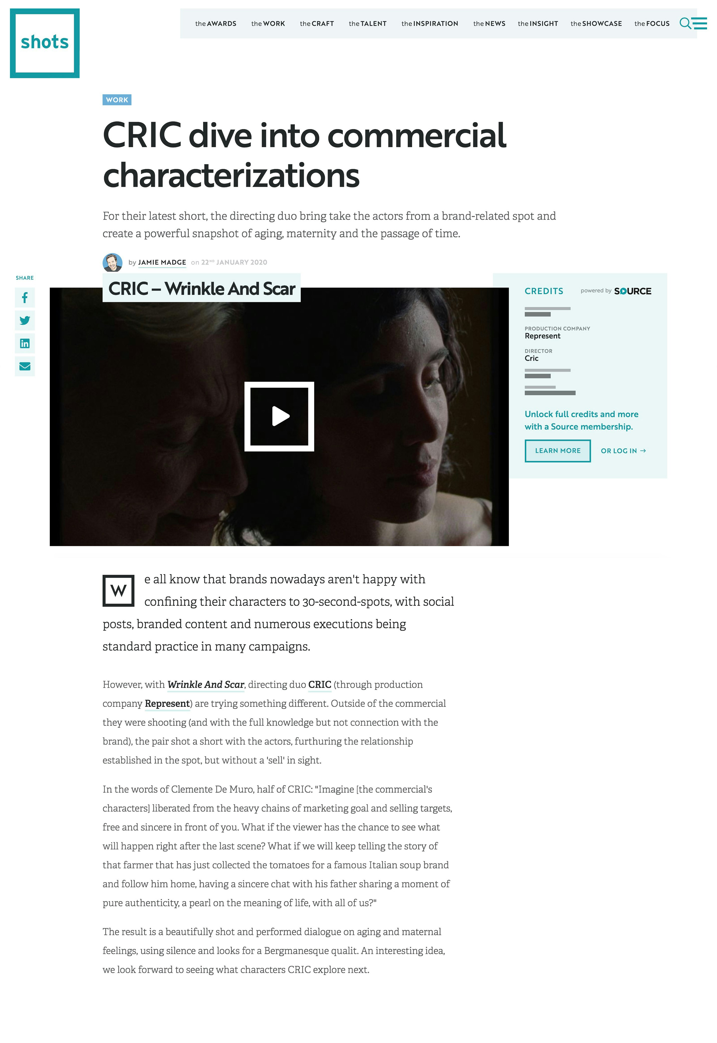 However, with Wrinkle And Scar, directing duo CRIC (through production company Represent) are trying something different. Outside of the commercial they were shooting (and with the full knowledge but not connection with the brand), the pair shot a short with the actors, furthuring the relationship established in the spot, but without a 'sell' in sight.